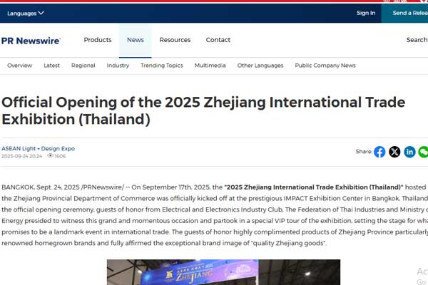 On September 17th, 2025, the "2025 Zhejiang International Trade Exhibition (Thailand)" hosted by the Zhejiang...
